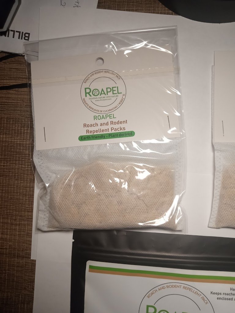 ROAPEL, IS THE MOST POWERFUL COCKROACH RAT MICE REPELLENT IN THE WORLD! MADE AND MANUFACTURED RIGHT HERE IN NEWYORK STATE. IT’S LIKE HAVING A EXTERMINATOR IN THE PACKET. Simply put anywhere you have an issue with cockroaches rats and mice take a repellent packet place it and troubled areas! And watch the cockroaches mice and rats disappear. Power with plant-based oils and other ingredients. Safe for children and pets, as long as used as directed.